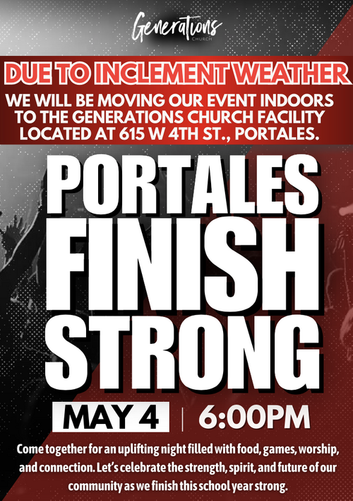 As the school year comes to a close, Portales Finish Strong is an opportunity for students, families, and leaders across the community to gather in unity, encouragement, and faith. Let’s lift each other up and declare that we’re finishing this year stronger than ever.